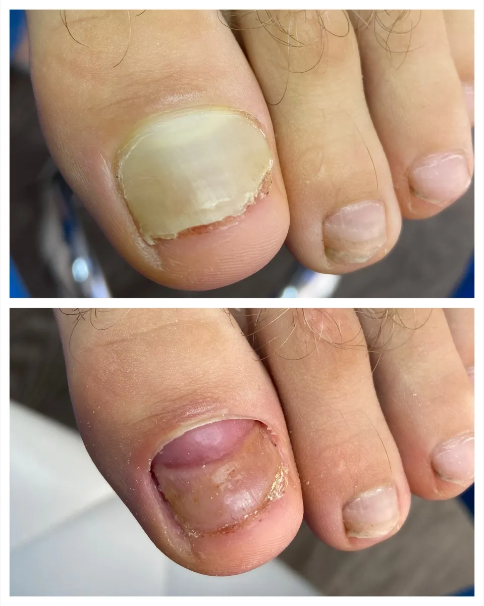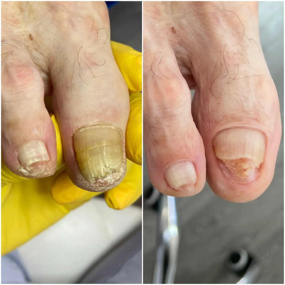 Зачистка нігтьової пластини, ураженої оніхомікозом. Підготовка нігтів до лікування у дерматолога.