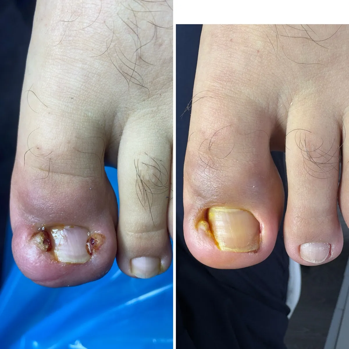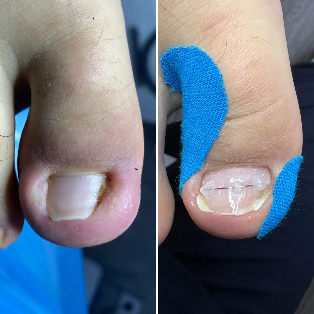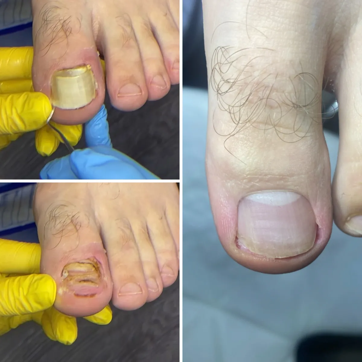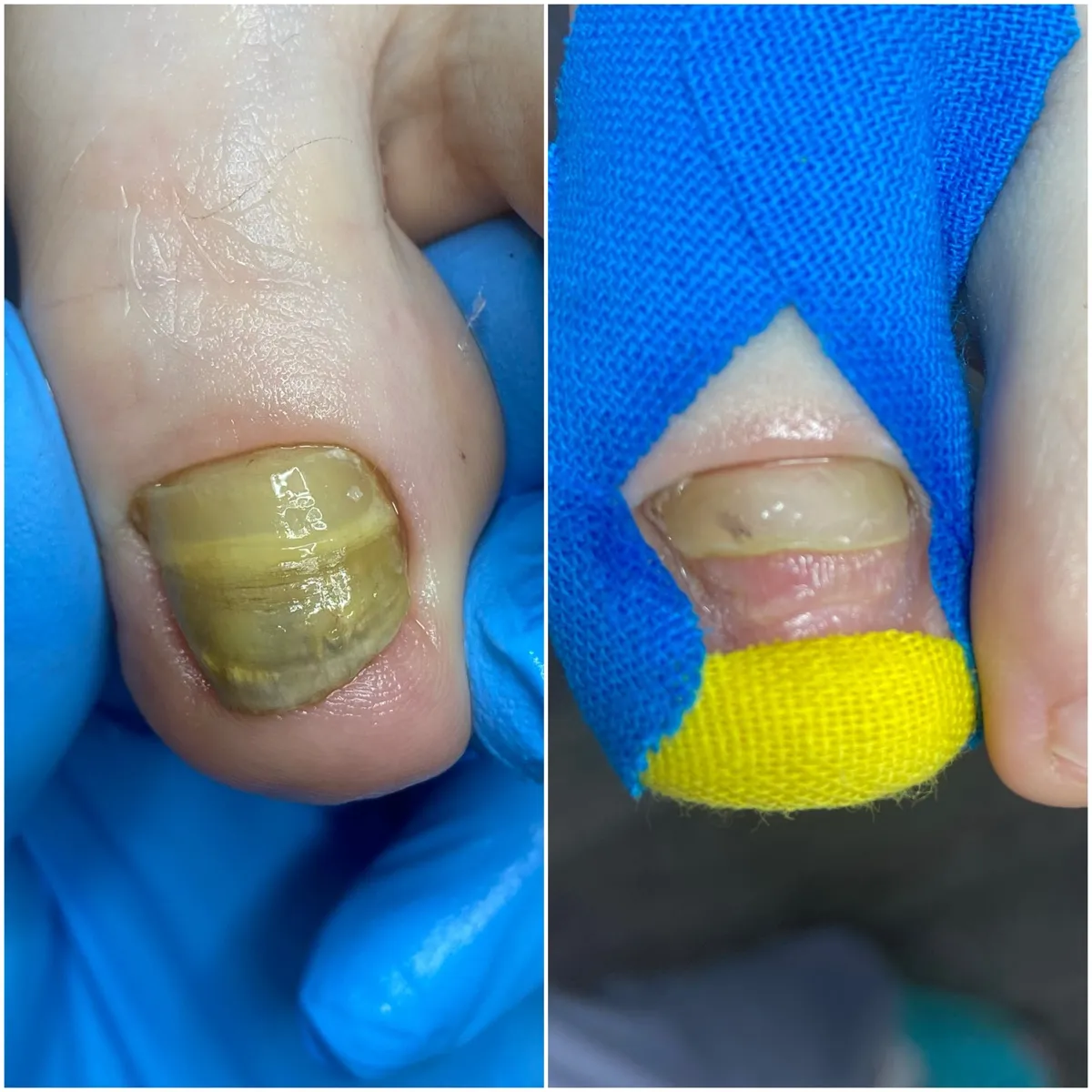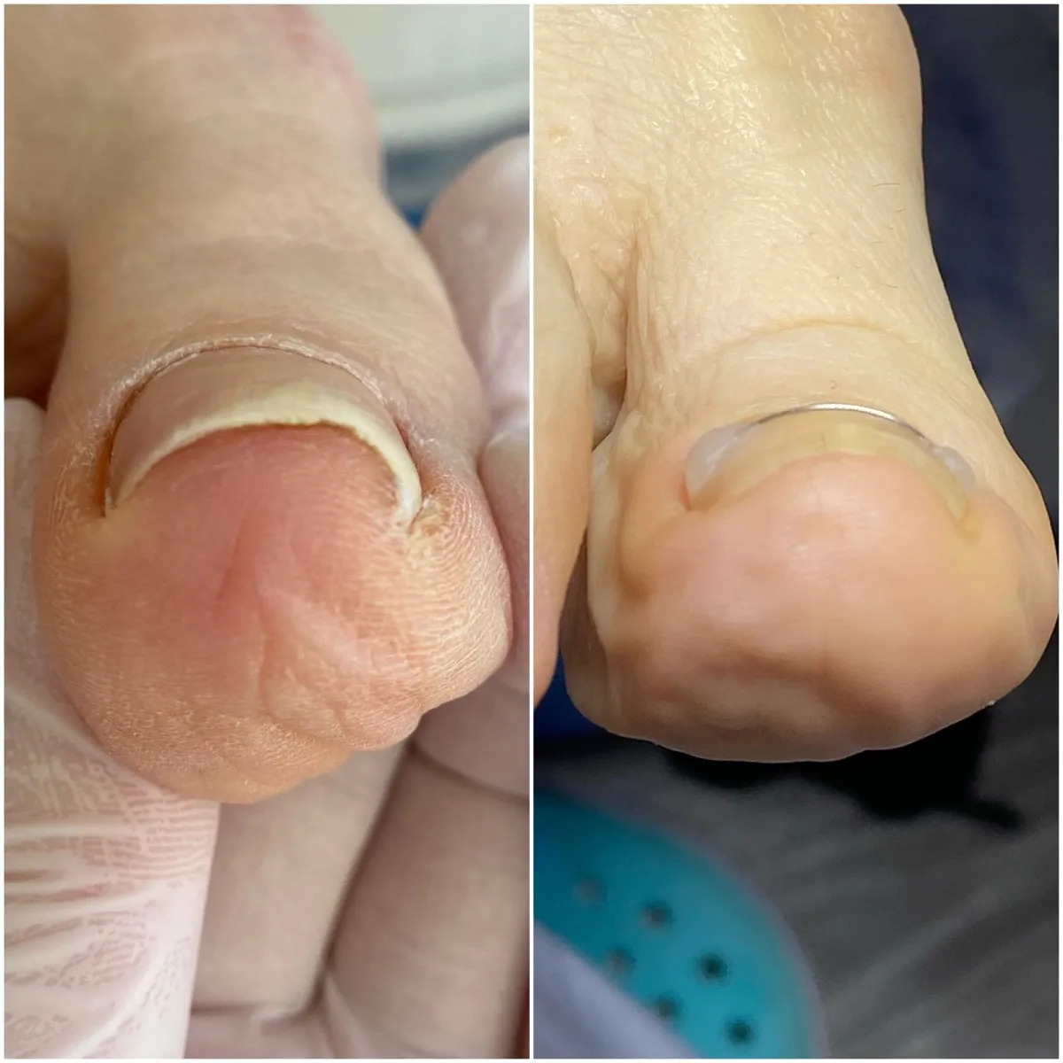 Безболісне видалення кута нігтя, встановлення корекційних систем (Титанова нитка) для виправлення форми.