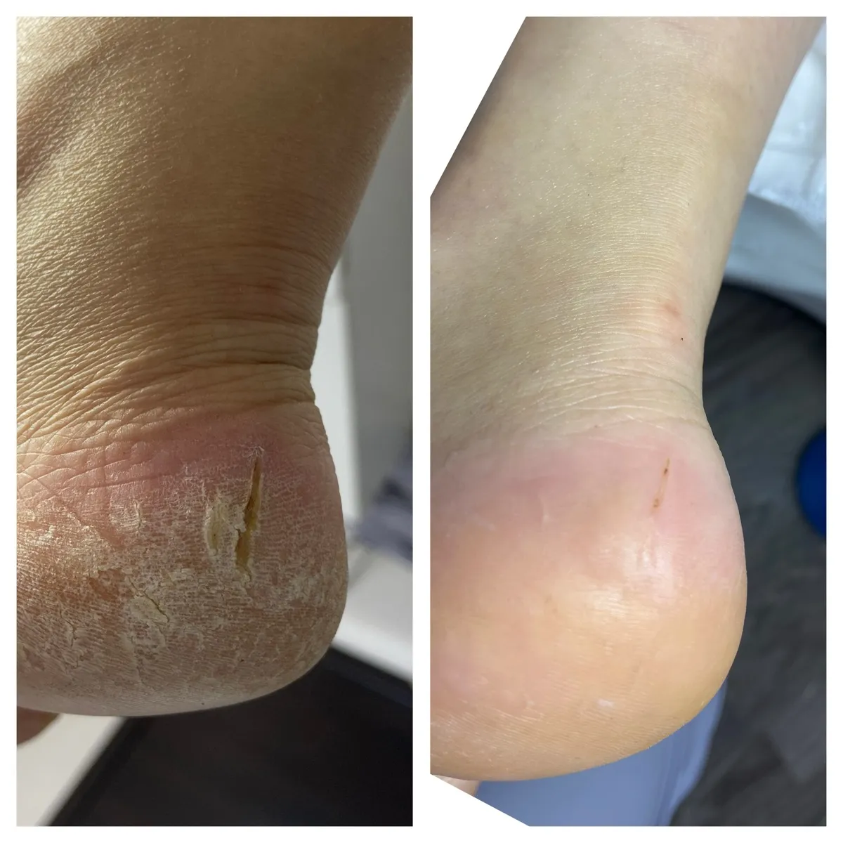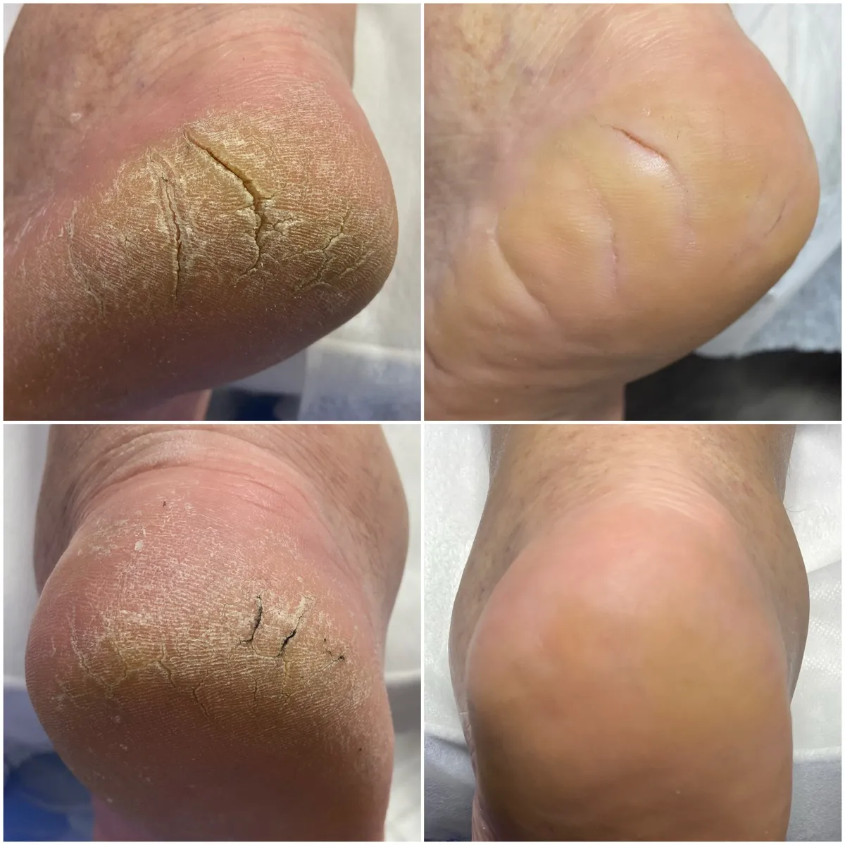 Дбайлива обробка глибоких тріщин, видалення стрижневих мозолів та натоптишів. Рекомендації по догляду.